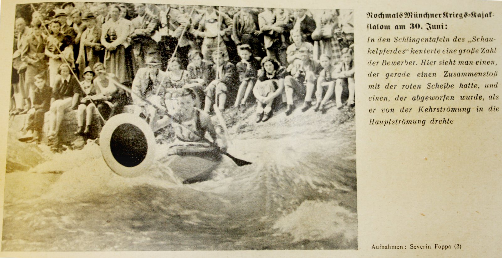 bekanntzumachen. Gemeinsam mit Ferdinand Staelin aus Württemberg installieren sie in der bayerischen Landeshauptstadt eine Slalomstrecke. Im Rahmen der 18. Isarregatta und der Deutschen Faltbootmeisterschaft am 27. Juni 1937 wird Münchens erster Kajakslalom durchgeführt. Die Wettkampfstrecke wird dafür mit Barrieren und Wenden „verschärft“. Sie reicht vom Flößerdenkmal über 1.200 m und 21 Tore bis in die Floßlände. Es ist weltweit der erst vierte Kanuslalom!