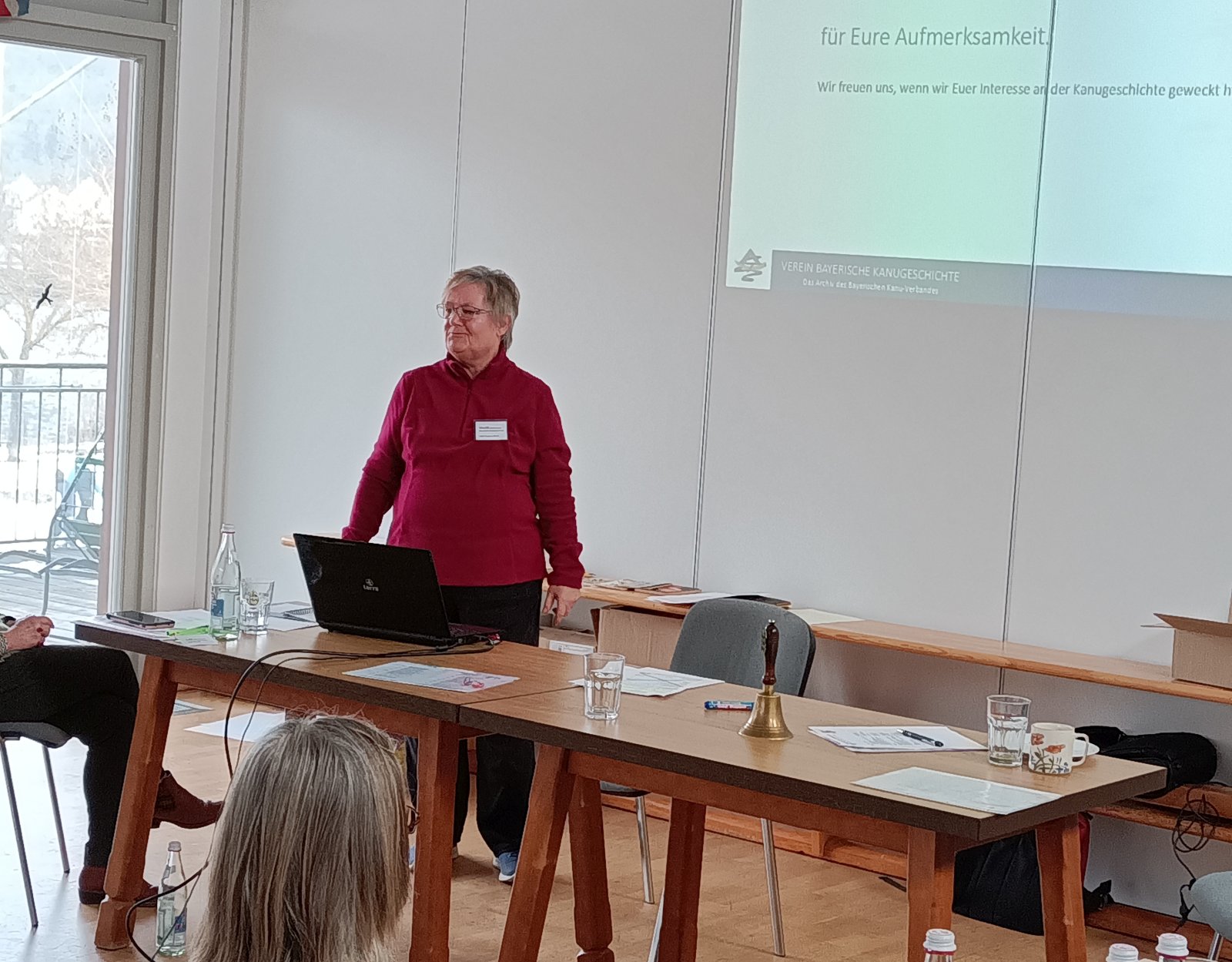 gegründet? Warum als eigenständiger e.V. und nicht als Ressort im Bayerischen Kanu-Verband? Darauf gab es plausible Antworten. Mit Scans und mitgebrachten Ausstellungsstücken zeigte sie die Wichtigkeit der Aufgaben auf. Denn die Geschichte beginnt heute – und ob heute oder vorgestern: Sie darf nicht in Vergessenheit geraten. Denn hier liegen unsere Wurzeln als Paddler und als Funktionäre.