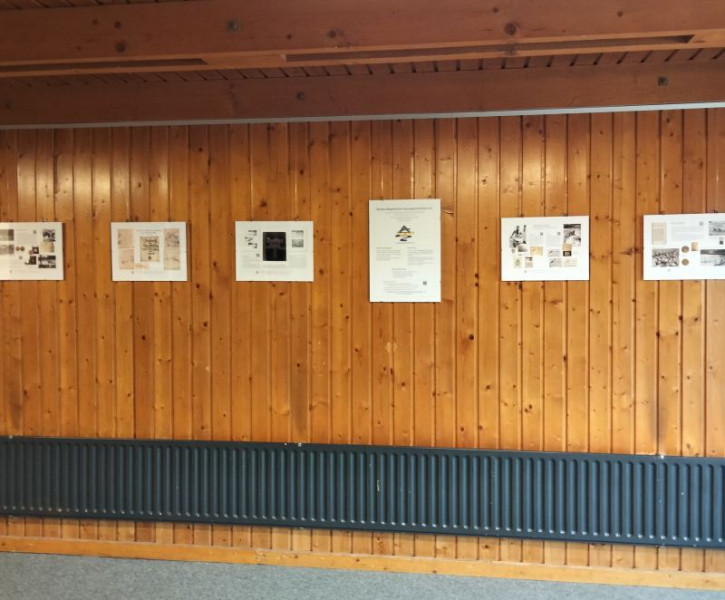 Das Leistungszentrum hatte eigens für solche Zwecke ein Aufhängesystem angeschafft, doch gibt es inzwischen nicht mehr genügend Seile und Aufhängehaken, sonst könnten wir auch den zweiten Flur bestücken …