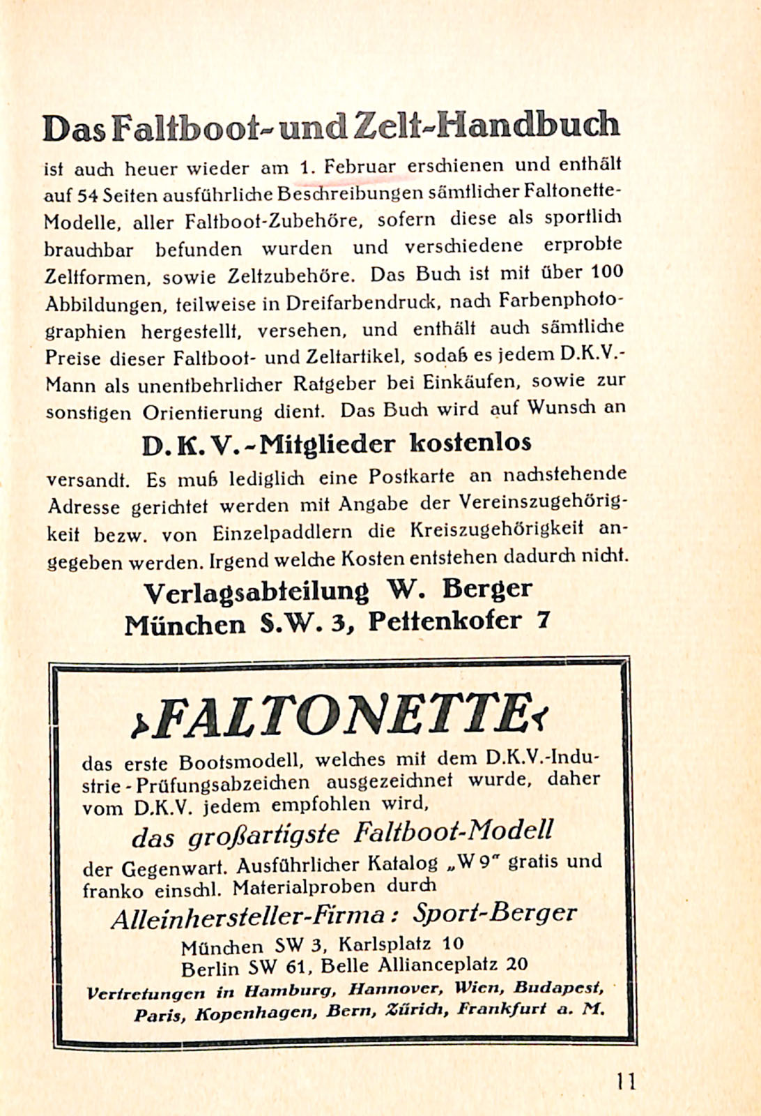 des Faltboot-Obmanns. Berger wurde so bald über Bayerns Grenzen hinaus als Faltboot-Minister bekannt. Hans Berger erfand um 1926 die „Schlafmatratze“ (Vorgänger der Luftmatratze).