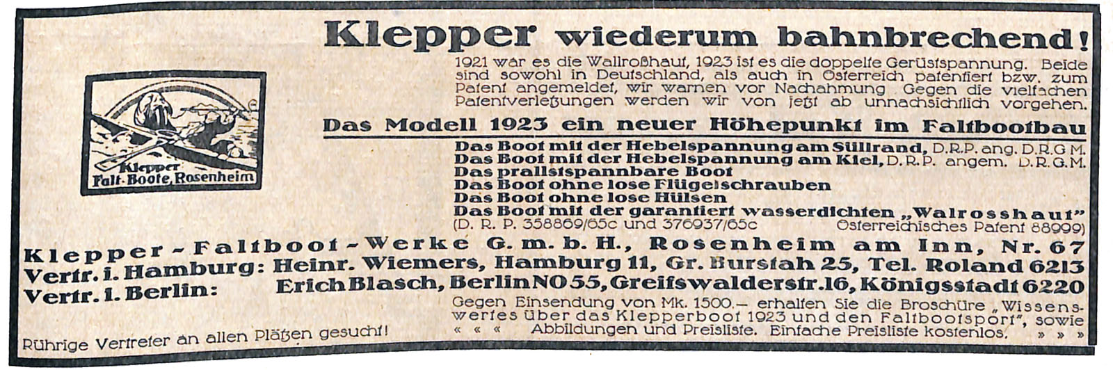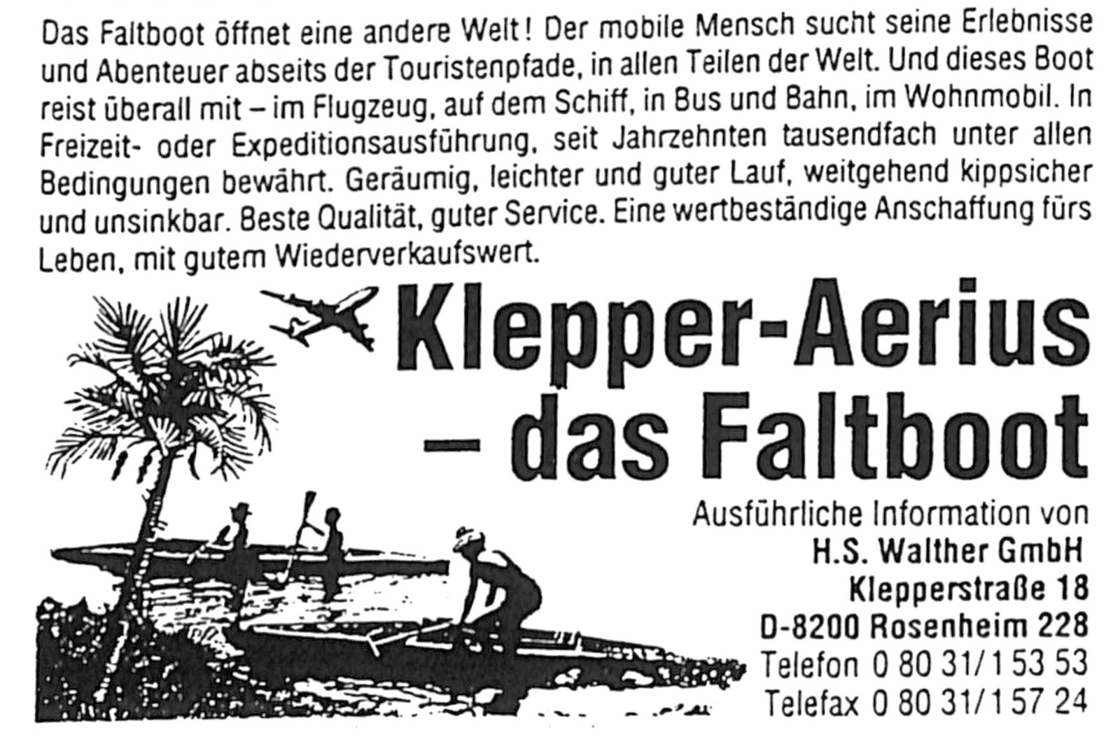 Aufgrund weiterer Nachfrage nach Faltbooten begann der Rosenheimer Hermann Siegesmund Walther, Klepper Faltboote in Lizenz zu fertigen. 1981 wurde die H. S. Walther GmbH gegründet.