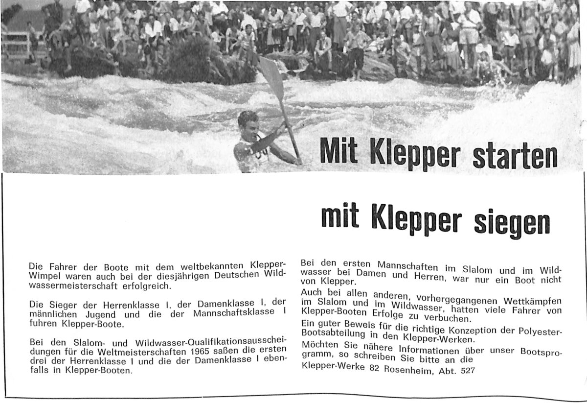 In den Anfangsjahren wurde Johann Klepper (1868-1949) noch belächelt, als 'spinnender Schneider' abgetan und war dem Spott und Hohn der Kritiker ausgesetzt. Dies konnte ihn bei der Verwirklichung seiner Idee jedoch nicht bremsen. Am 19. Mai 1907 kaufte der erste Kunde – ein Herr Oechsle aus Neu-Ulm – in Johann Kleppers Werkstatt ein Segeltuchkajak zum Preis von 120,75 Mark.